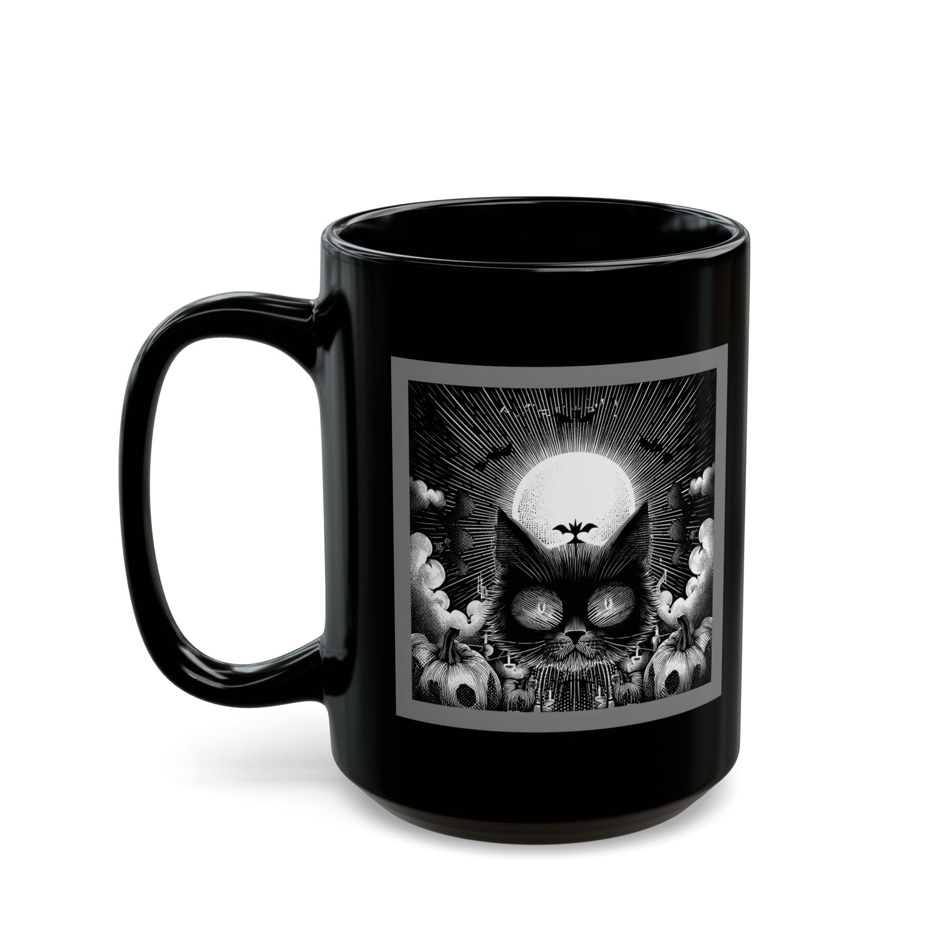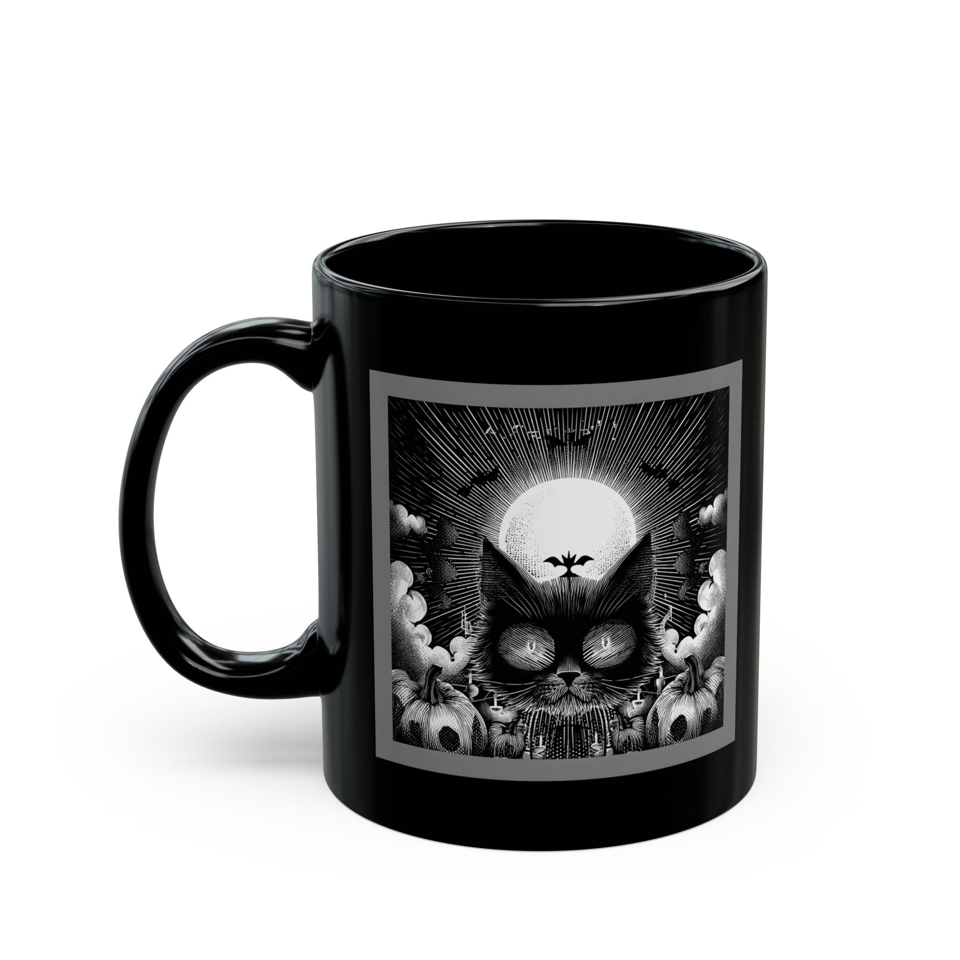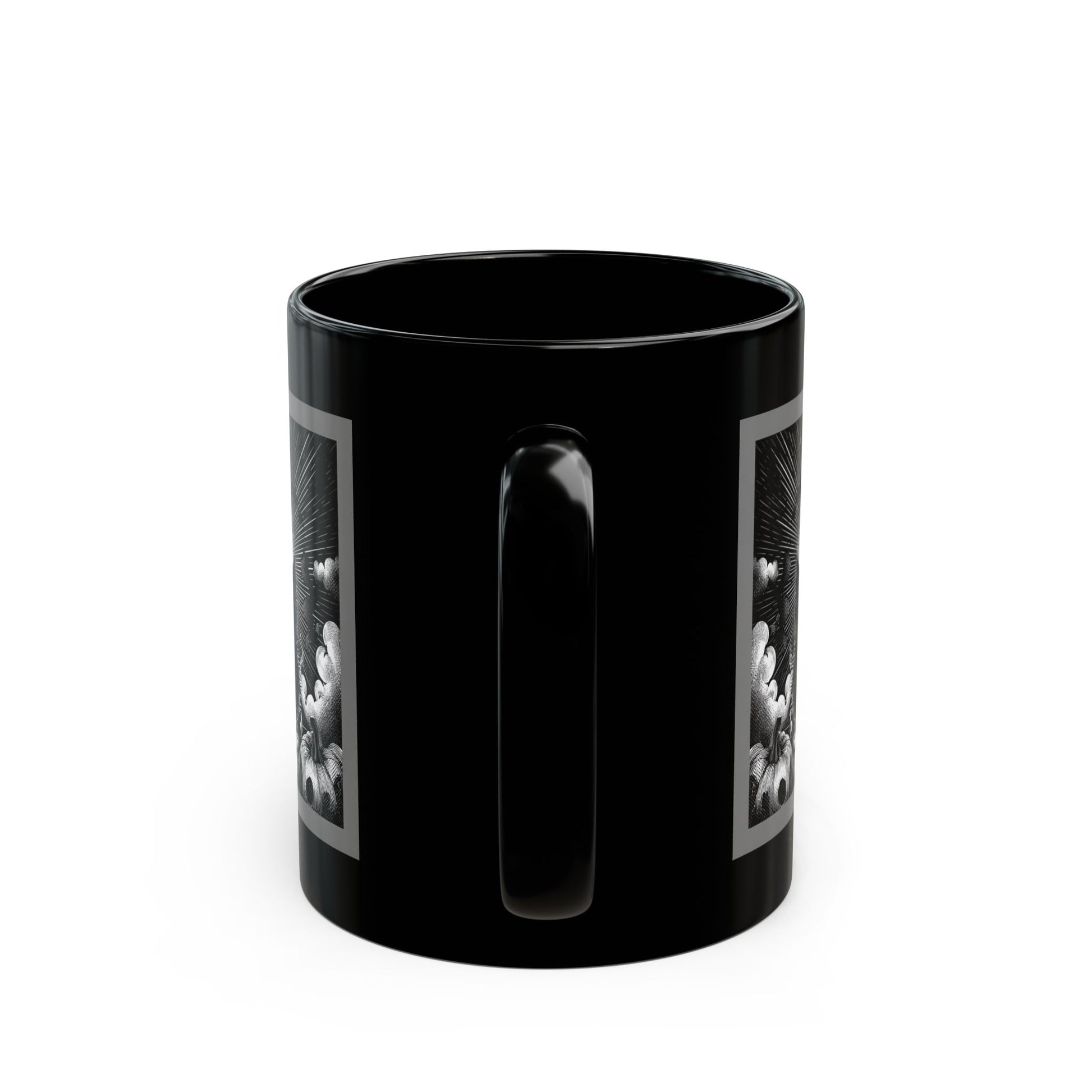 This glossy black ceramic mug carries a moody, monochrome design that feels like a quiet ritual with every sip. The detailed, noir-style artwork wraps the mug in shadowed contrasts and fine linework, giving it an artful, contemplative presence on a desk or nightstand. Comfortable C-shaped handle and two size options let you choose how much coffee or tea fuels your morning focus. Durable, dishwasher- and microwave-safe glazing keeps the image crisp and the surface glossy, so the piece keeps its dramatic look through daily use. It’s for someone who prefers thoughtful, slightly dark aesthetics and wants a piece that anchors slow moments—early mornings, late-night sketching sessions, or simply settling in with a book.
